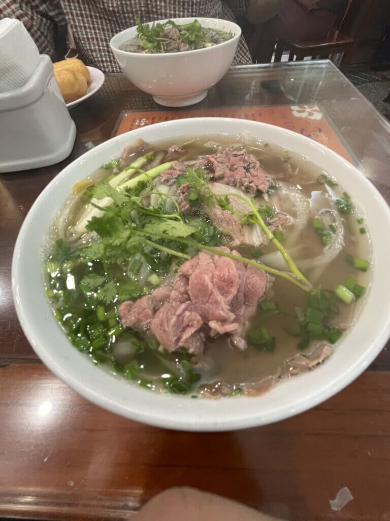 これは牛肉のフォー。平たい米麺と薄切りの牛肉。